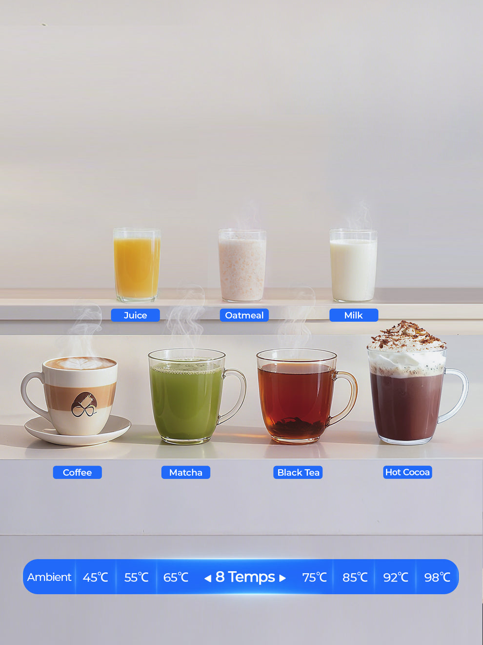 8 Temperaturoptionen mit sofortiger Erwärmung und Smart Display