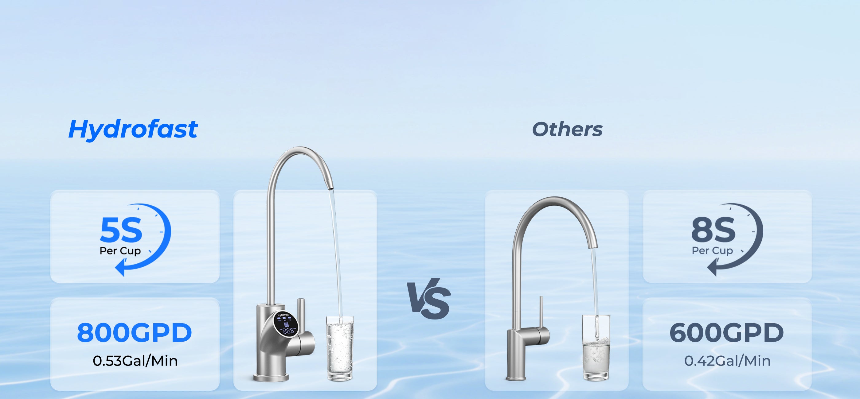 800 GPD de alto flujo: Llena un vaso de 8 oz en solo 5 segundos, perfecto para familias ocupadas que buscan acceso instantáneo a agua purificada.