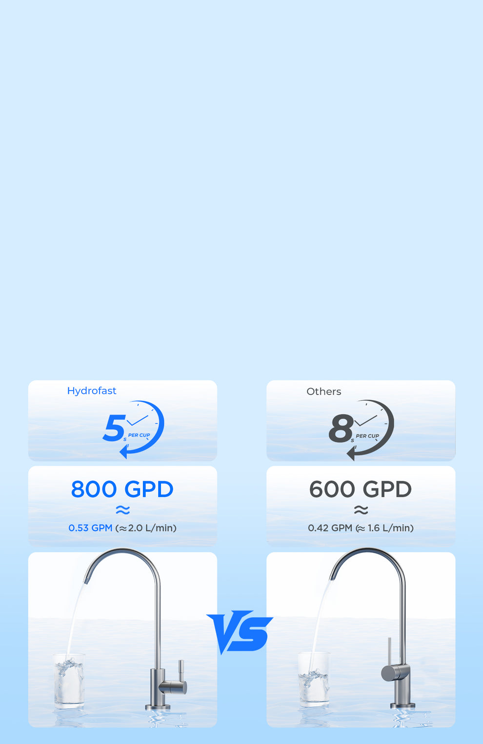Débit quotidien d'eau pure : 800 GPD (gallons par jour)