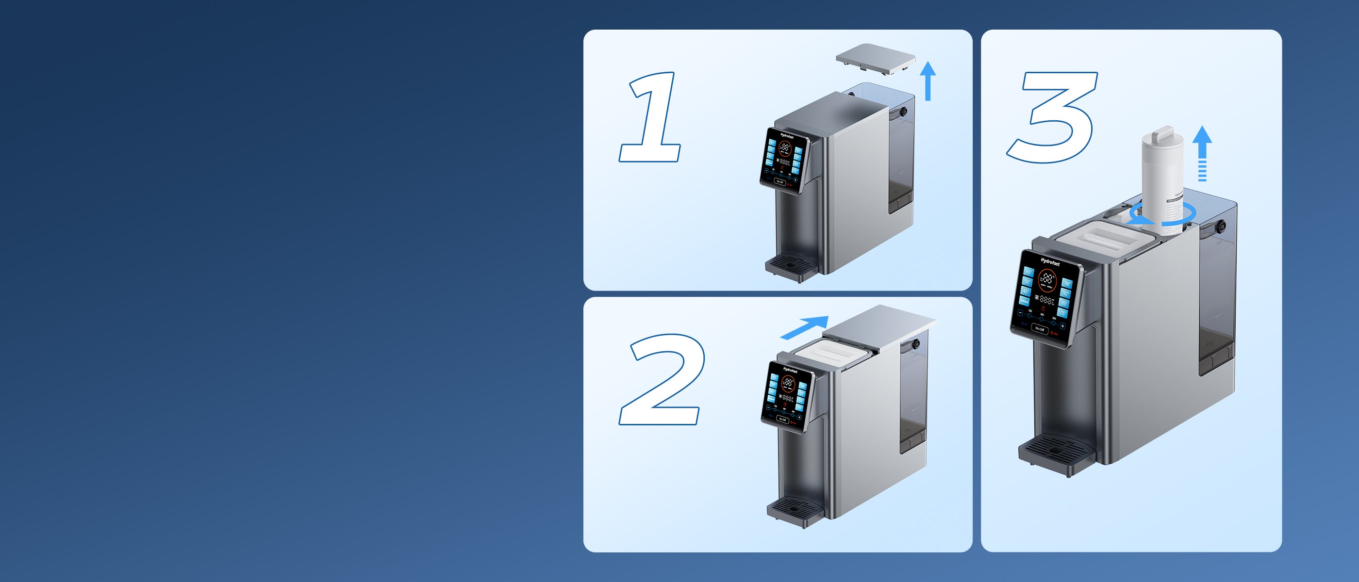 La durata di un filtro dipende dalla qualità dell'acqua e dalle abitudini di utilizzo. Il sistema di monitoraggio intelligente Hydrofast monitora lo stato del filtro in tempo reale. Grazie all'indicatore di durata della cartuccia del filtro, sarai sempre informato sullo stato del filtro e su quando è il momento di sostituirlo, garantendoti acqua costantemente pura.