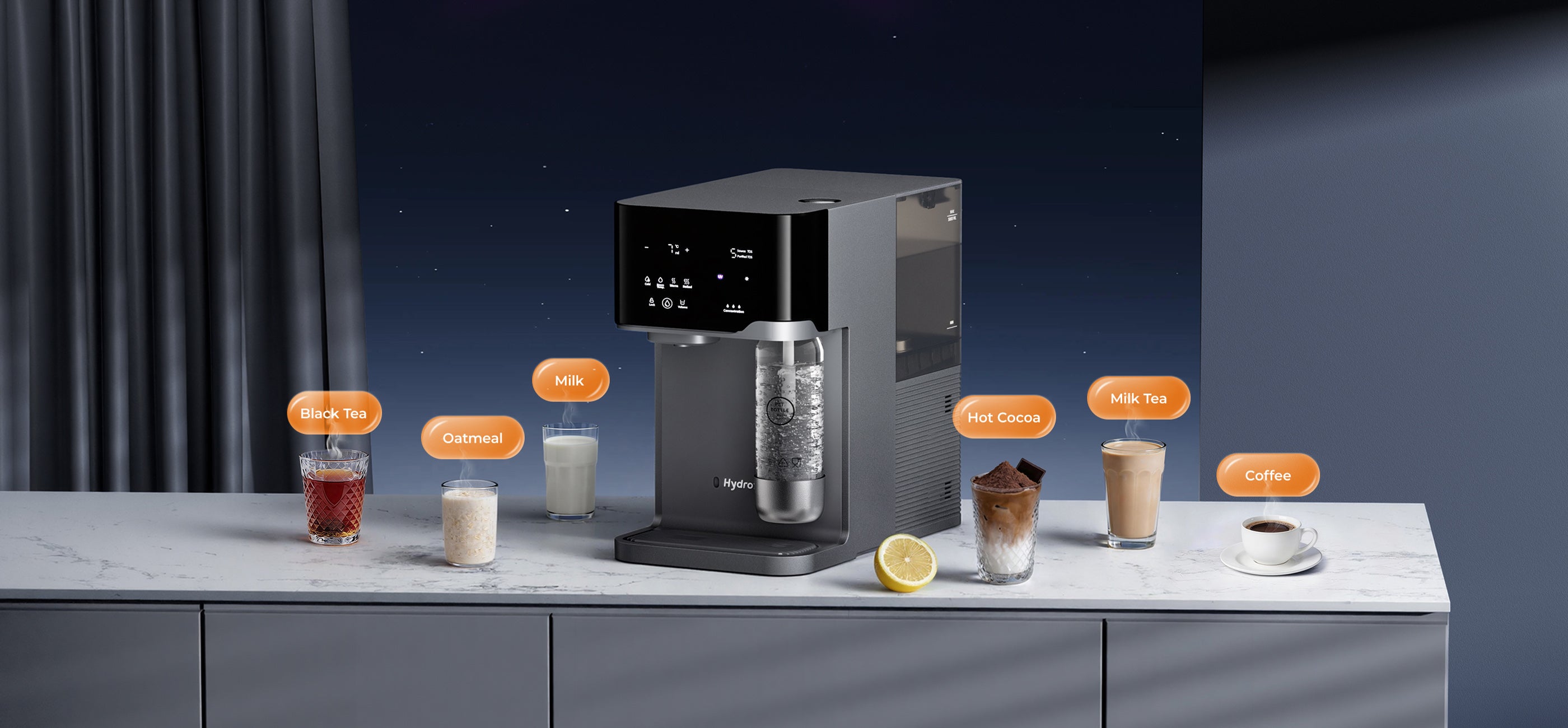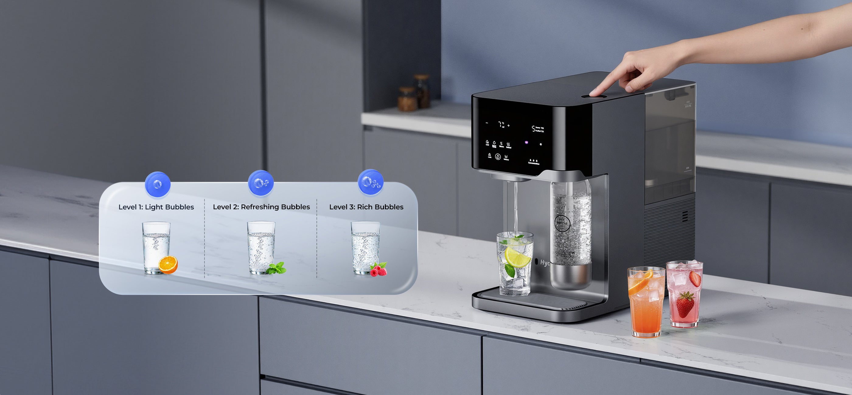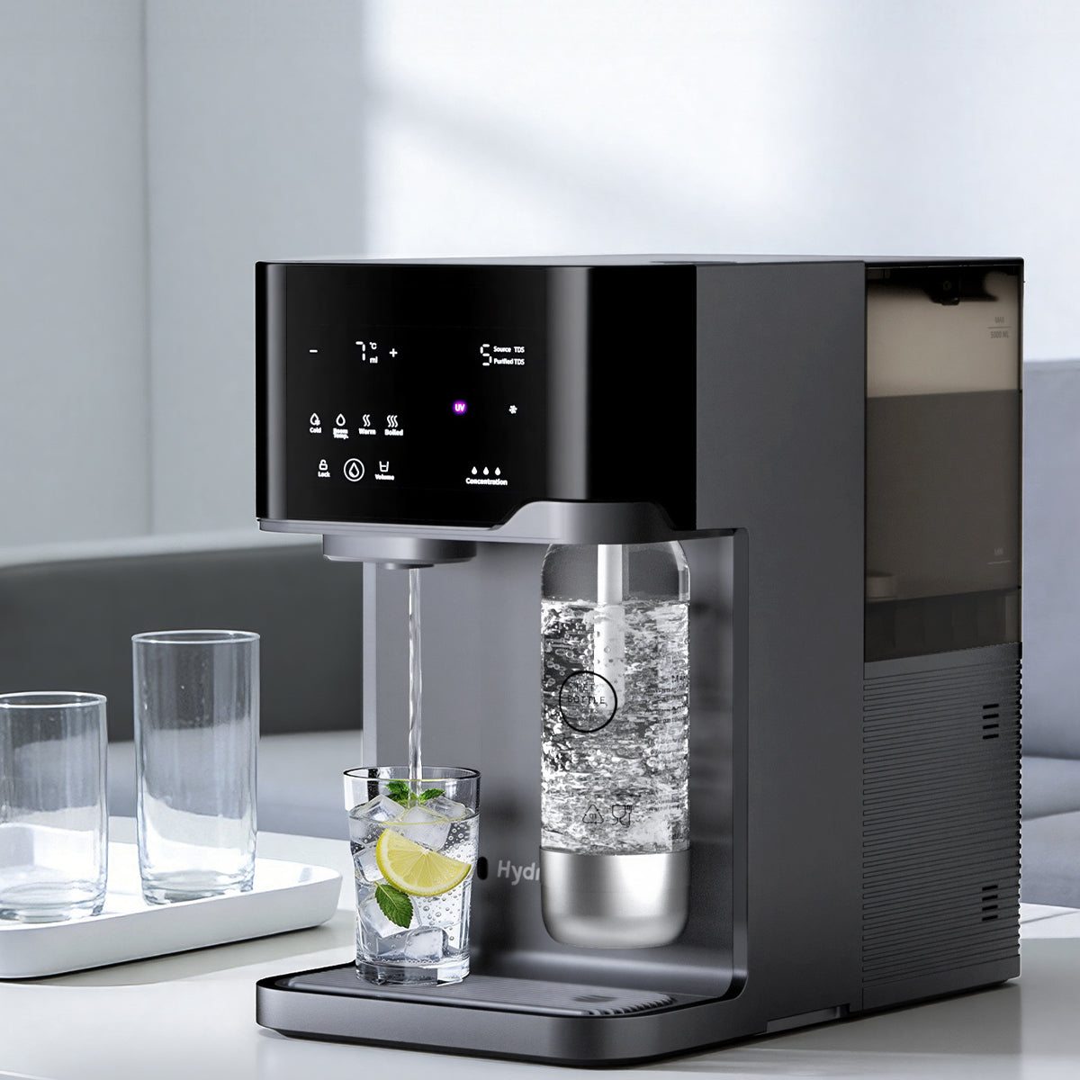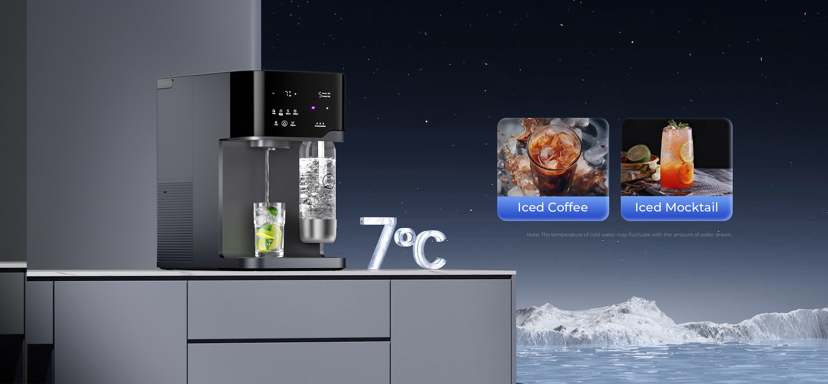 - Water Output Type: Sparkling Water, Iced Water, Room-Temperature Water, Hot Water