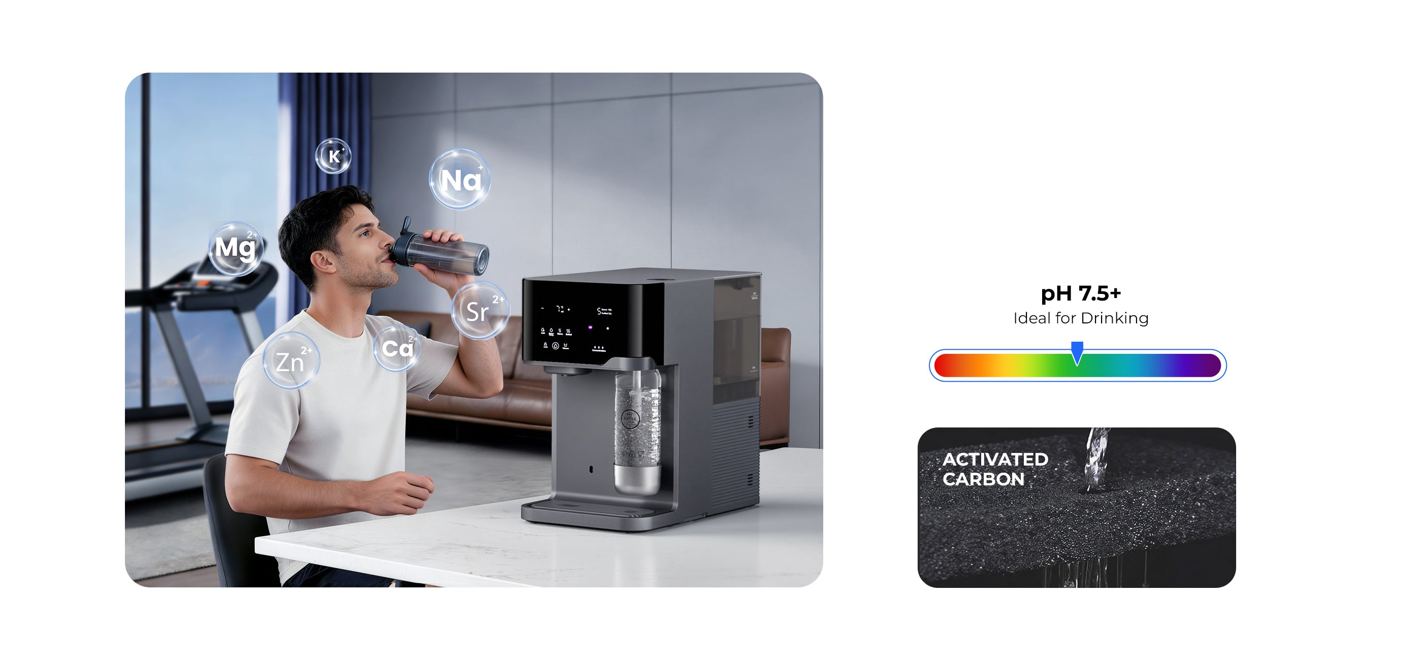 Alkaline Mineral Enhancement: Advanced mineral supplementation technology not only replenishes essential minerals but also balances pH levels, ensuring crisp, pure water quality.