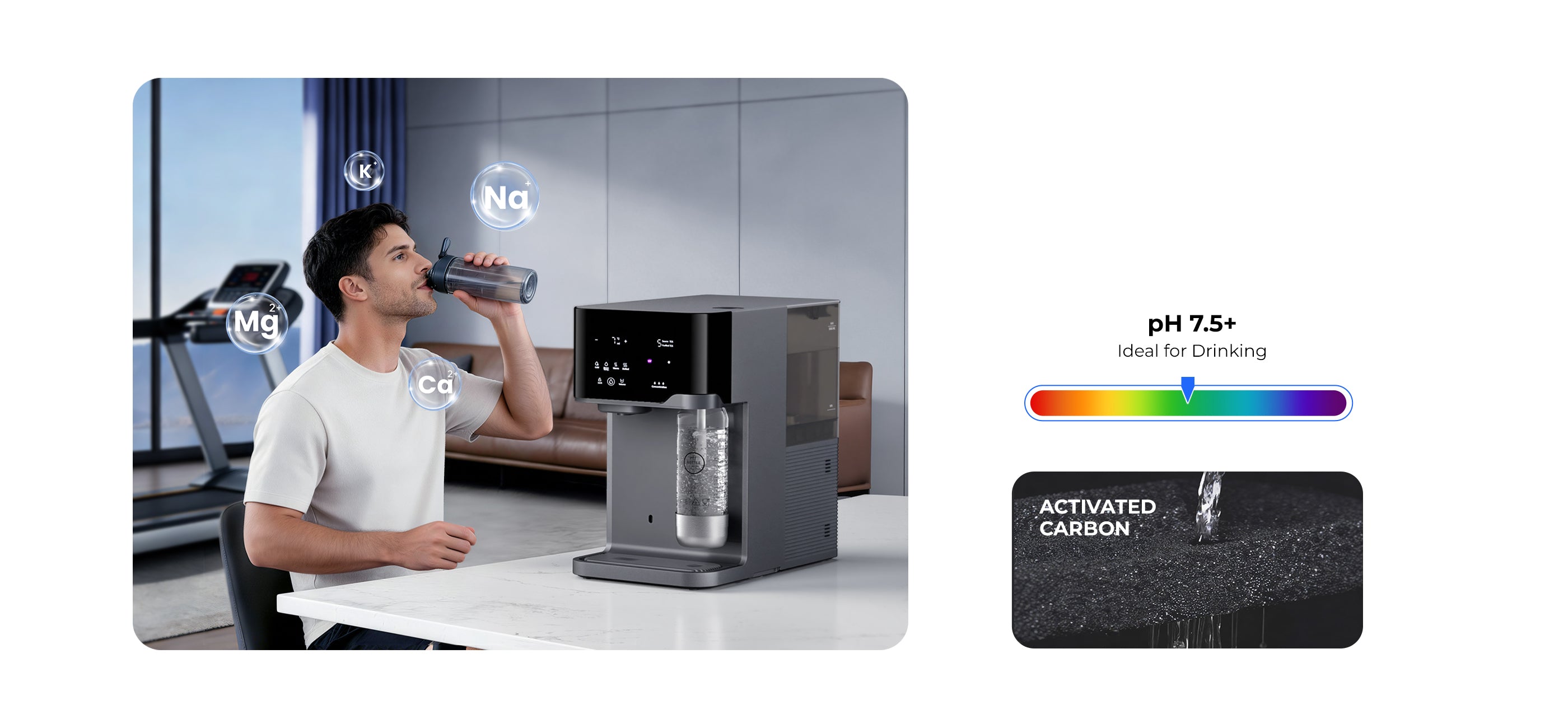 Alkaline Mineral Enhancement: Advanced mineral supplementation technology not only replenishes essential minerals but also balances pH levels, ensuring crisp, pure water quality.